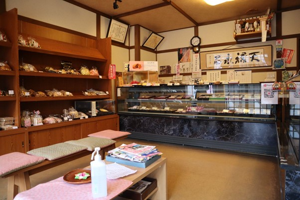 続いては、「岩瀬名物といえば三角どらやき」と言われるほど人気のどらやきを味わいに、昭和8年創業の老舗和菓子店「大塚屋」さんへ。